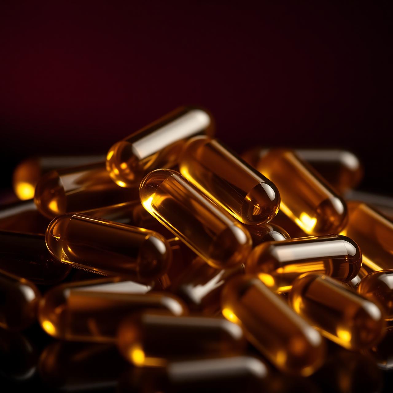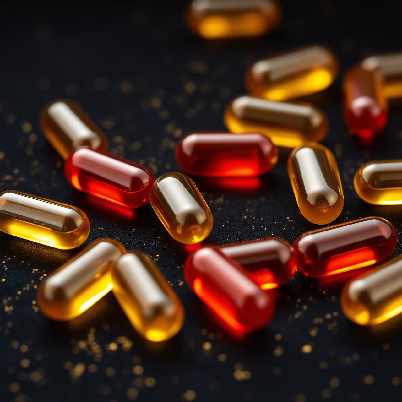 সোনালি স্বচ্ছ সফটজেল — সহজে গিলে ফেলা যায়, দ্রুত শোষিত হয়, প্রিমিয়াম মান।